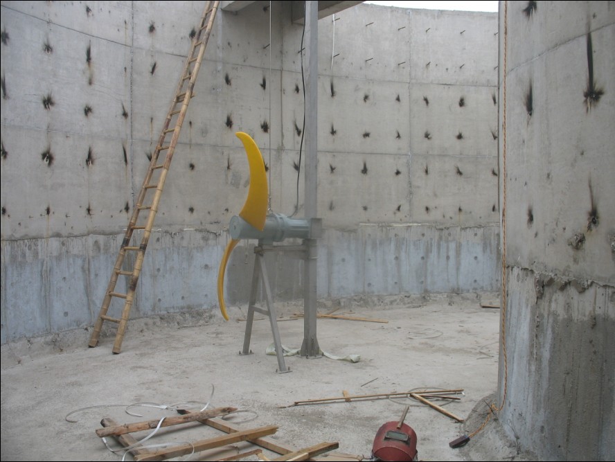 3、按每立方米清水所需耗功5 w,乘以污泥校正系數(shù),再乘以池型校正系數(shù),得出每立方米待混合攪拌介質(zhì)所需耗功的實(shí)際值,再乘以待攪拌介質(zhì)的體積,得出整池待混合攪拌介質(zhì)所需的功率。
