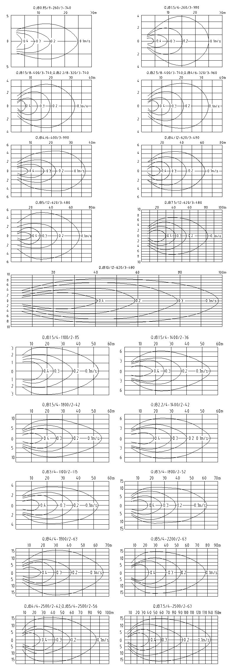 潛水?dāng)嚢铏C(jī)的選型是一項(xiàng)比較復(fù)雜的工作,選型的正確與否直接影響設(shè)備的正常使用,作為選型的原則就是要讓攪拌機(jī)在適合的容積里發(fā)揮充分的攪拌功能,一般可用流速來確定。根據(jù)污水處理廠不同的工藝要求,攪拌機(jī)流速應(yīng)保證在0.15~0.3m/s之間,如果低于0.15m/s的流速則達(dá)不到推流攪拌效果,超過0.3m/s的流速則會影響工藝效果且造成浪費(fèi)。所以在選型前首先確定潛水?dāng)嚢铏C(jī)運(yùn)用的場所,如:污水池、污泥池、生化池;其次是介質(zhì)的參數(shù),如:懸浮物含量、粘度、溫度、PH值;還有水池的形狀、水深等。