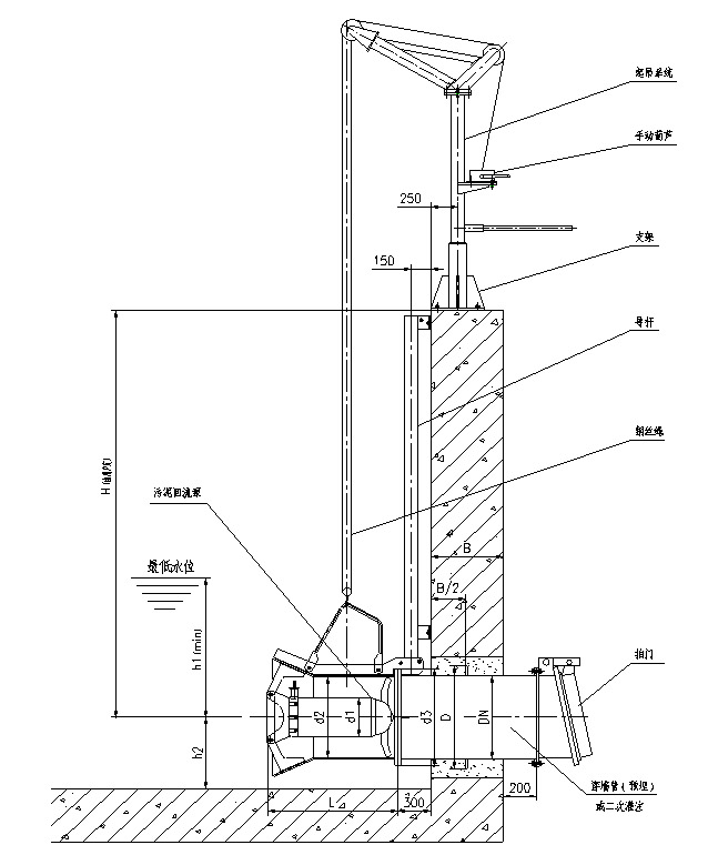3. 本設備除穿墻管需要預埋外,導桿、起吊架均用鋼膨脹螺栓與池體連接,不需要預埋件。